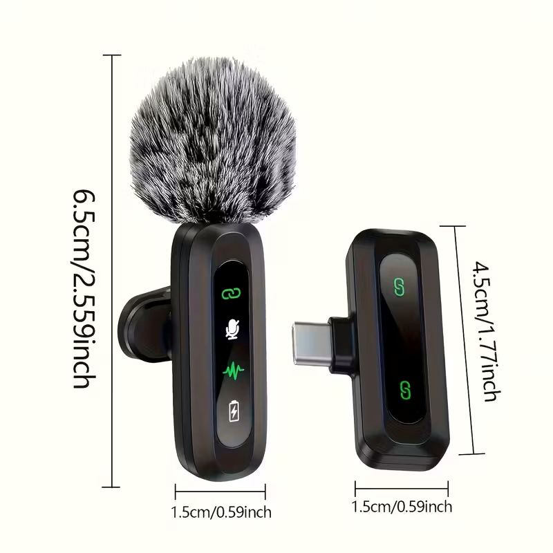 Набір бездротових лацканних мікрофонів сумісних з пристроями iOS та Android. Вони мають дизайн з LED-дисплеєм, що робить їх ідеальними для відеозапису на різних платформах