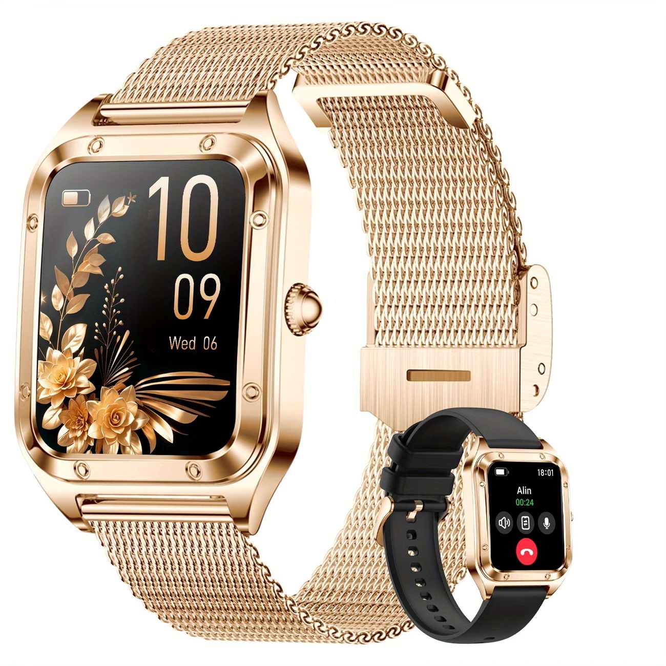Розумний годинник з 1,59-дюймовим HD сенсорним екраном, AI голосовим керуванням, функцією бездротових дзвінків, для жінок і чоловіків, ідеальний подарунок, сумісний з iPhone та Android, фітнес-трекер, лічильник кроків